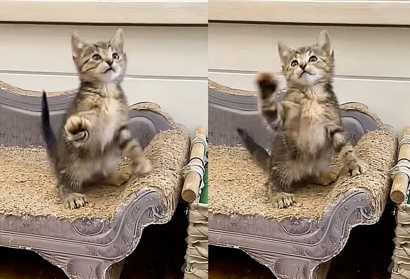 Over the next ten days, the change in Kickers was incredible. Her once-bent paw straightened almost completely, and she could finally place it flat on the ground. The moment she realized she could run like a normal kitten, she raced joyfully around the room, her happiness lighting up the space. She was unstoppable — climbing, jumping, and exploring everything she could find.
