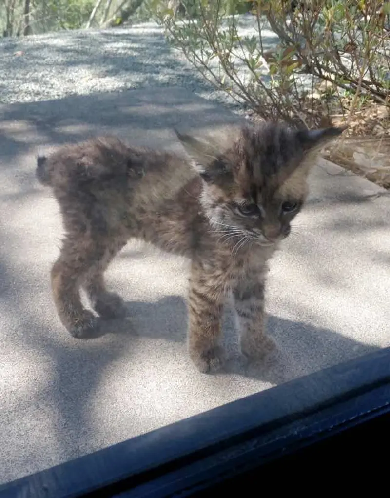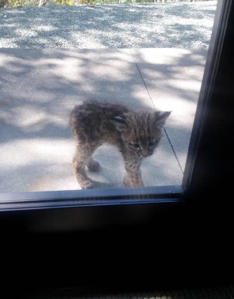 “There was a visitor by my guest house this morning,” said Reddit user Falloutmike. “It was a very small bobcat, zoomed in, kitten-sized but with long legs. It’s the first time I’ve ever seen one, and it was both exciting and surreal.”