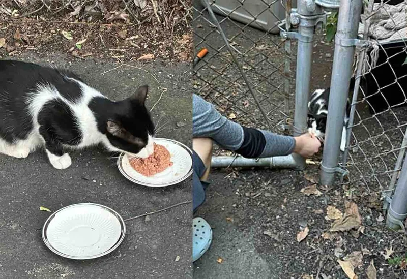 A heartwarming story unfolded in a small neighborhood when a black-and-white stray cat and her tiny kittens were discovered living in an alleyway. The mother cat was fiercely protective, surviving each day to feed her babies. A kind woman named Amy, who owns a vintage and gift store called Stardust, stepped in with her son and a few neighbors to make sure the family was safe, warm, and fed. What started as an act of kindness soon turned into a beautiful bond between a rescued cat and her new home.