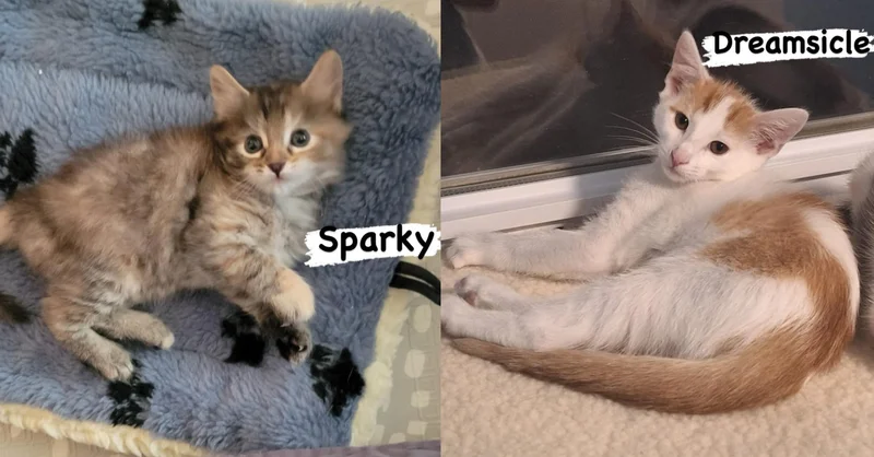 Dreamsicle, the only boy, remained the brave heart of the group — bold, playful, and loving. He often looked out for his timid sister, Little Duchess. Meanwhile, the fourth kitten, Sparky, took a little longer to walk but quickly became one of the most playful and snuggly of the bunch, exploring every corner of her foster home with excitement.