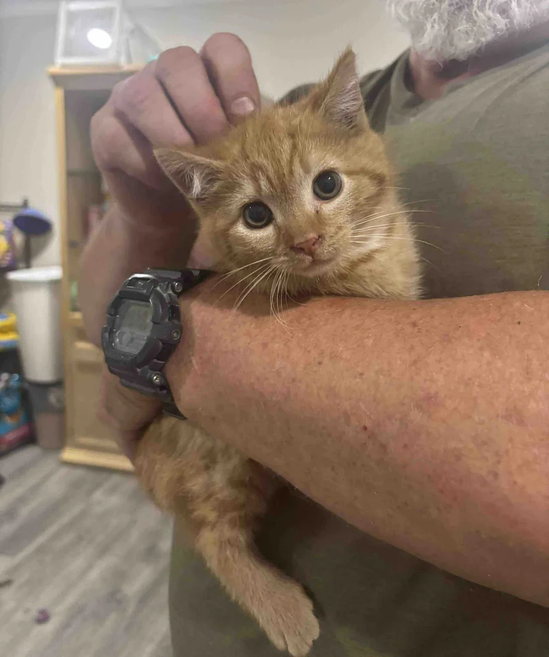 The rescue team set up humane traps and waited patiently, watching from a distance. After hours of effort, their patience paid off — the mother cat and one of her kittens, an adorable orange tabby later named Julius, were safely rescued. Though nervous and frightened, they quickly adjusted to the new environment, learning the warmth of human care. Julius clung tightly to his mother, finding comfort in her familiar presence.