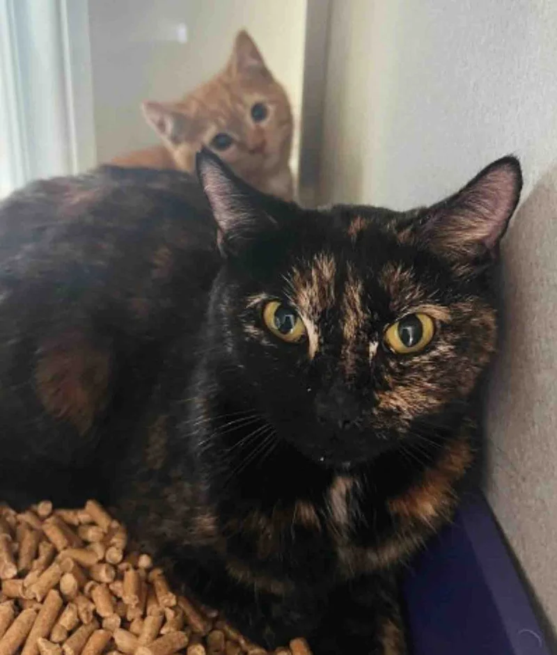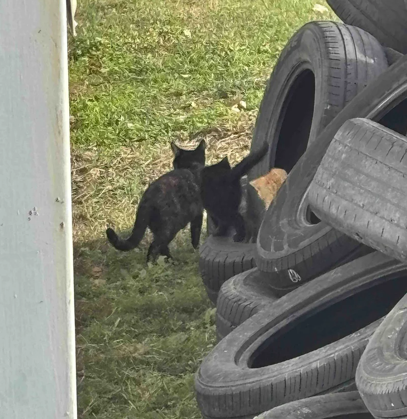 To everyone’s surprise, the same tortie mother cat returned months later — and this time, she wasn’t alone. She had given birth again, bringing two tiny kittens back to the same tire shop that had once sheltered her. The shop owners immediately began feeding the little family and made sure they stayed safe until the kittens were old enough to eat on their own. Once that moment arrived, Steve and Rachel from Sparkle Cat Rescue stepped in to help them find a forever home.