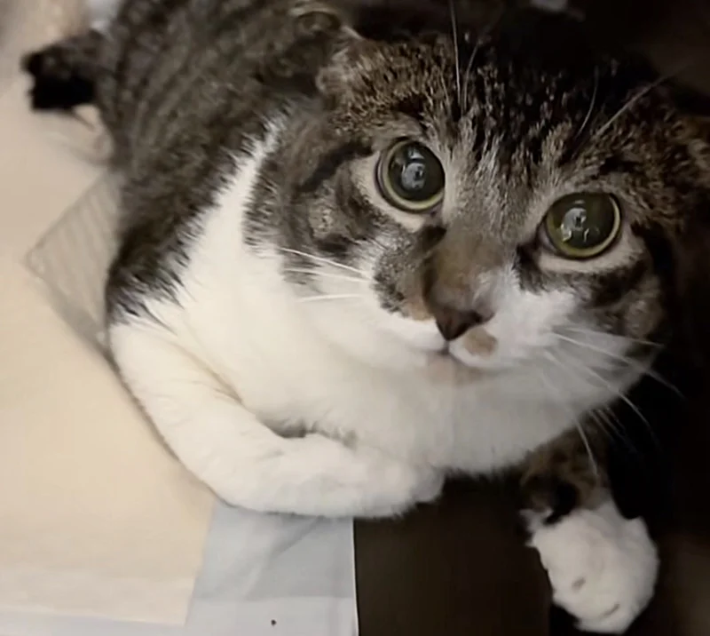 When the rescuer opened the carrier, they found a scared little cat whose wide eyes darted around the room, unsure of what was happening. Despite being abandoned and alone, he never hissed or tried to scratch. His gentle nature shone through from the very start.