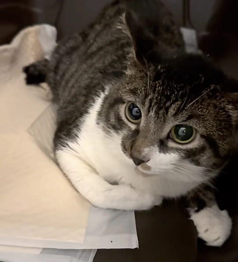 About a month ago, Greenpoint Cats received an urgent message about a tabby cat left outside near a dumpster, trapped inside a small carrier. The weather was cold and rainy, and the poor cat was terrified. A kind passerby spotted him just in time and rushed to bring him inside, protecting him from the storm.
