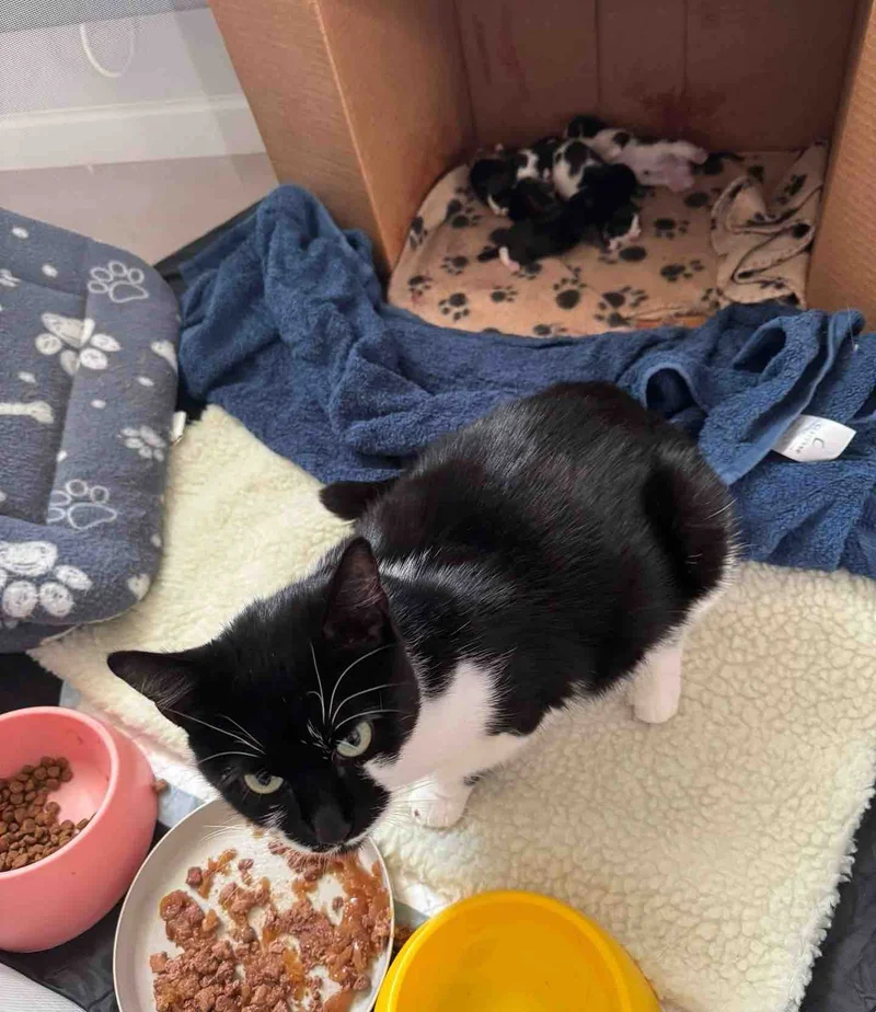 After months of patient effort, rescuers finally managed to bring a stray cat named Carolina-wren and her last litter of kittens safely indoors. The once-elusive tuxedo cat had roamed freely for years, raising her young on the streets, but this time, things were different. The volunteers gave her what she had always longed for—a warm, safe home filled with love and care.