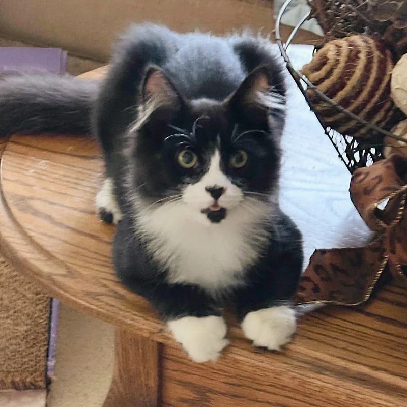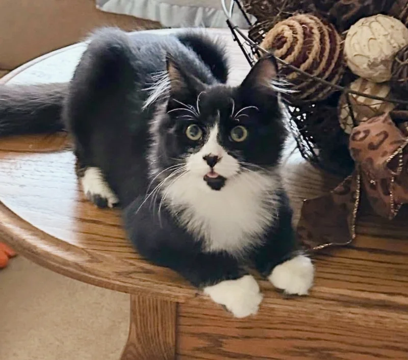 While his mother was getting her much-needed care, Johnny blossomed into a boisterous, happy young cat, constantly seeking out playtime and charming his foster family with his playful mischief. “He plays nonstop and will bring you tons of laughs with his silly antics. He absolutely loves attention. The moment you touch him, he instantly purrs and makes biscuits,” his foster mom noted. The transformation in his health was remarkable. His once scruffy, dull coat was now sleek and glossy, a testament to his recovery. “With good food and consistent care, he has made an amazing recovery,” Donna confirmed. She recalled that when she first rescued Johnny from the rooftop, he was terribly emaciated—“I could feel every rib and his spine.” Now, at seventeen weeks old, he has more than successfully doubled his initial weight. The sun-bleached, reddish-brown tinge in his original fur has been replaced by a soft, lustrous coat of a deeper black. He finally looks robust and healthy, exactly as a kitten his age should.