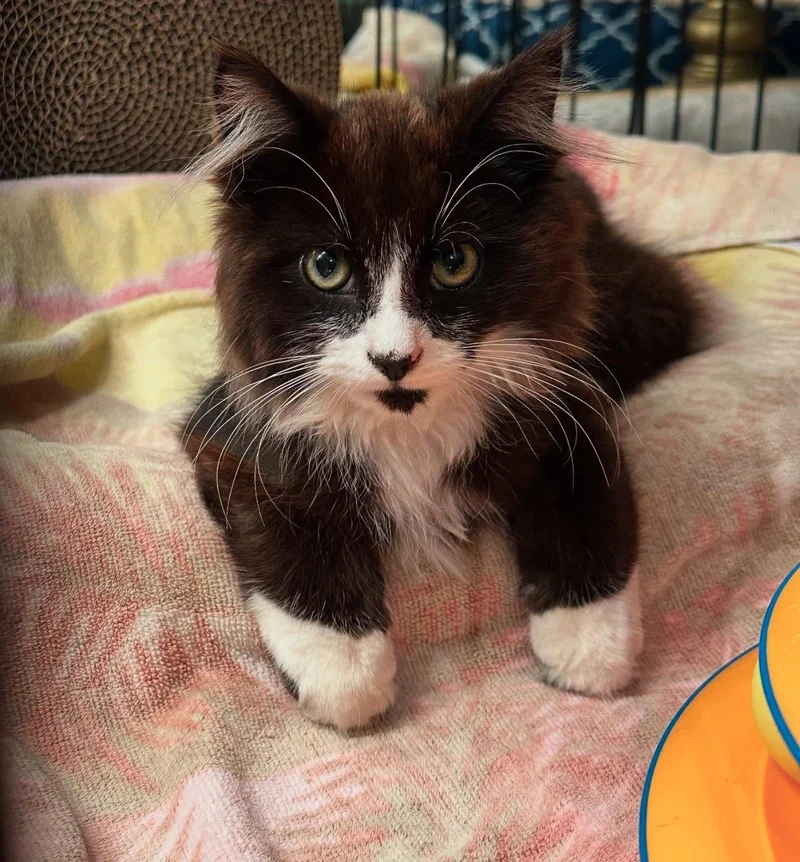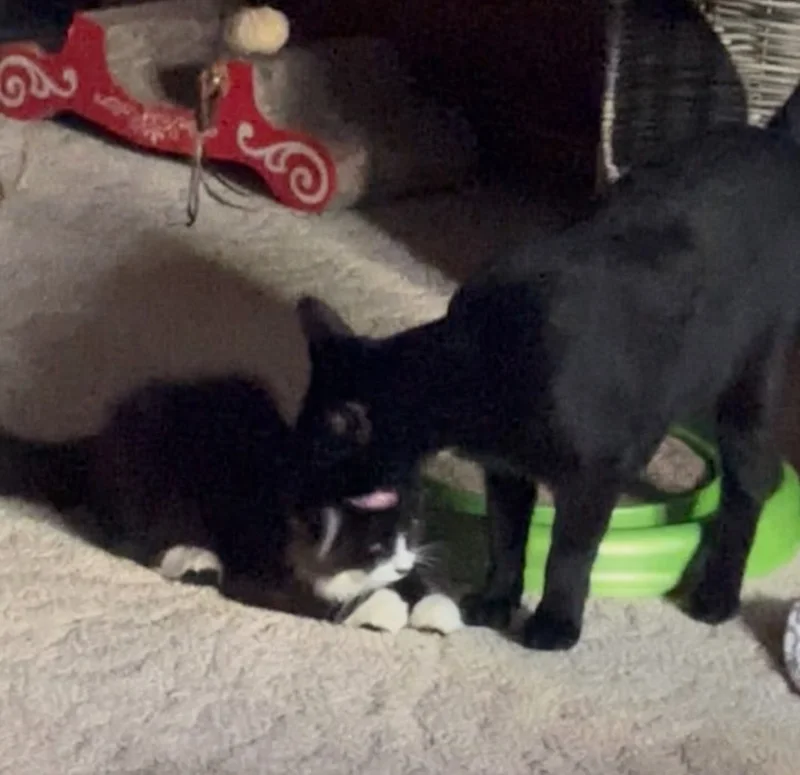 Not long into his foster journey, Johnny was introduced to Charcoal, the dignified resident “house panther” of his temporary home. Johnny immediately demonstrated his friendly nature, greeting his new, older feline friend with enthusiastic nose kisses and his characteristic steady rumble of purrs. This big-brother figure was a godsend. “Johnny is truly lucky to have Charcoal to show him how to cat—how to play, groom, and navigate indoor life,” Donna happily shared with Love Meow. While little Johnny was safe and thriving in his foster environment, Donna remained determined to complete the mission by helping his mother, too, ensuring she received proper care.