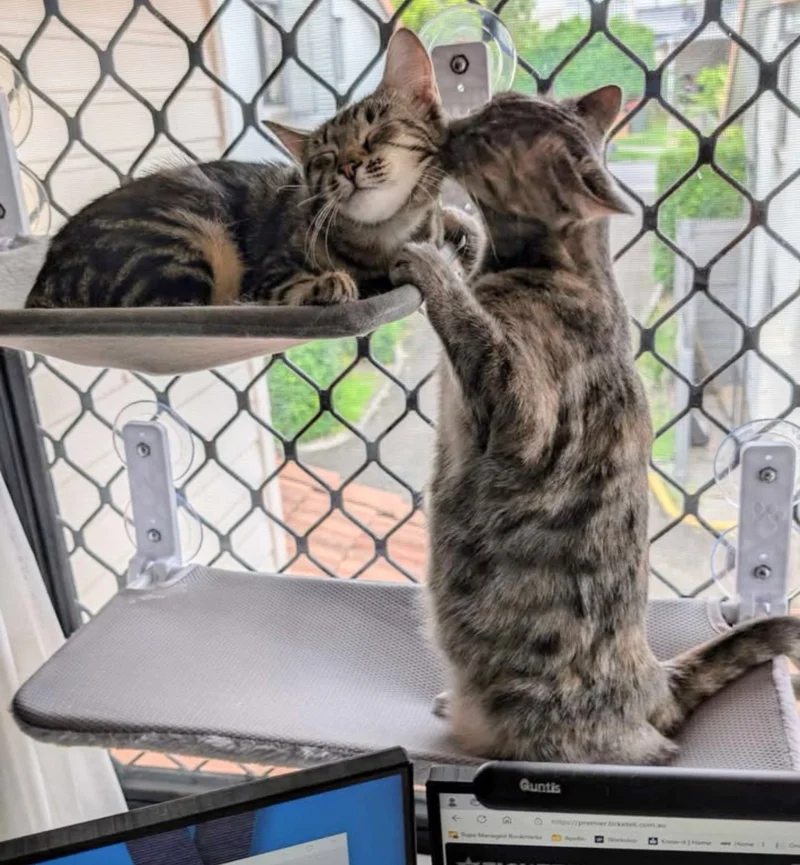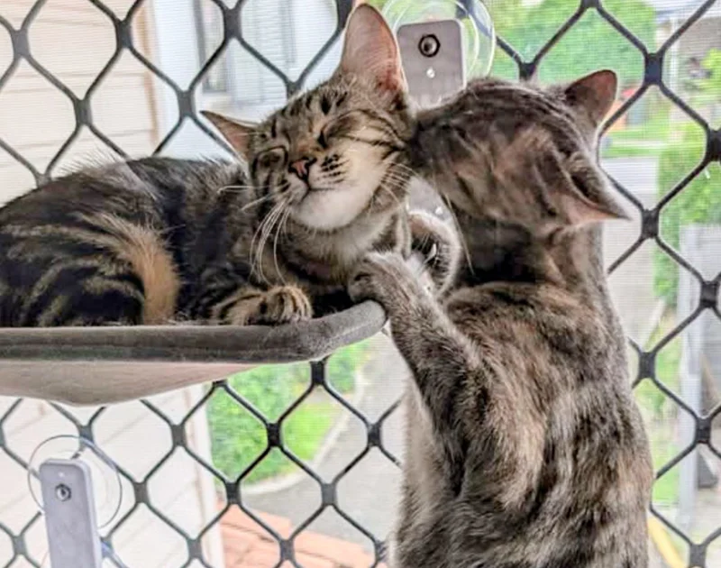 Now, both cats enjoy spending their days lounging in their cozy window hammocks and exploring their cat balcony, where they can safely watch birds and feel the breeze. “They’ve completely enriched our lives with their affection and silly antics,” Jaime shared. “We can’t imagine our home without them.”