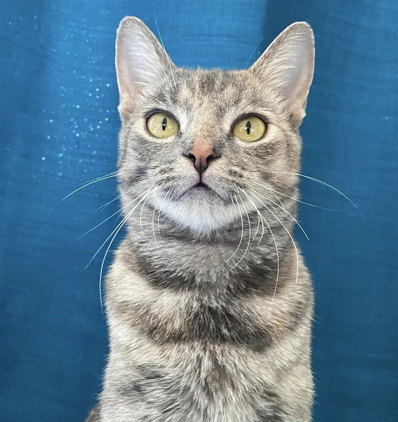 The second cat, named Brooklyn, was a regal, diluted torbie with mesmerizing fur and gentle eyes. She had arrived at the rescue with four kittens that weren’t even hers, but she had taken care of them like a devoted mother. Once fearful and withdrawn, Brooklyn had transformed through months of patient fostering into a confident, affectionate cat who loved being around people. Volunteers said, “She’s a happy, chatty girl who now enjoys attention, joins Zoom meetings, and curls up under your desk while you work.”